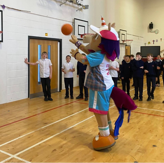 The final session of the programme saw a special visits by the Glasgow 2026 mascot Finnie who took part in a basketball challenge with the pupils and staff.
